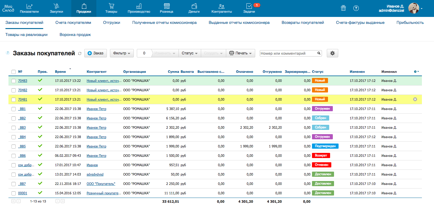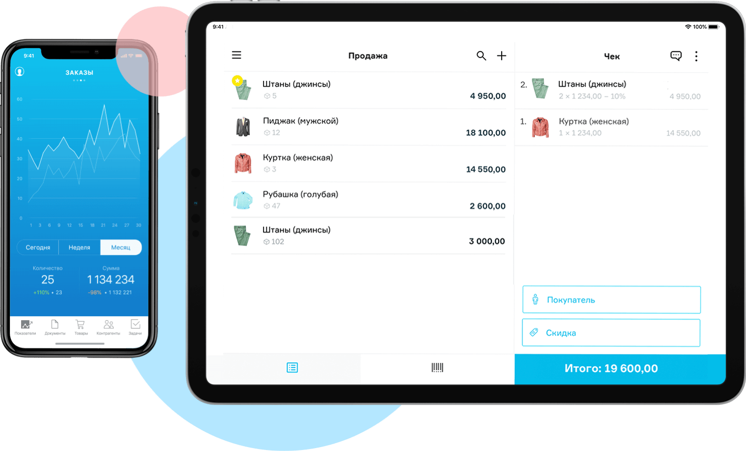 Обрабатывайте заказы, выставляйте счета, проводите отгрузки. Аналитика по продажам, остаткам, покупателям — всегда у вас в кармане!
